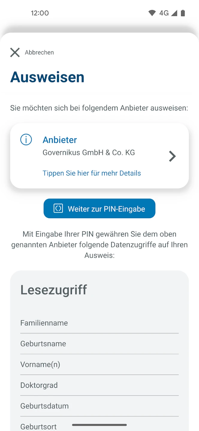 - User-Friendly Design & Data Protection: The interface is designed to guide users securely through the verification and signing process, minimizing errors. It prioritizes data protection by only transmitting necessary identity information securely encrypted and giving users clear control over their data, ensuring compliance with German data privacy laws (like the BDSG). This enhances trust and privacy for everyday digital interactions.