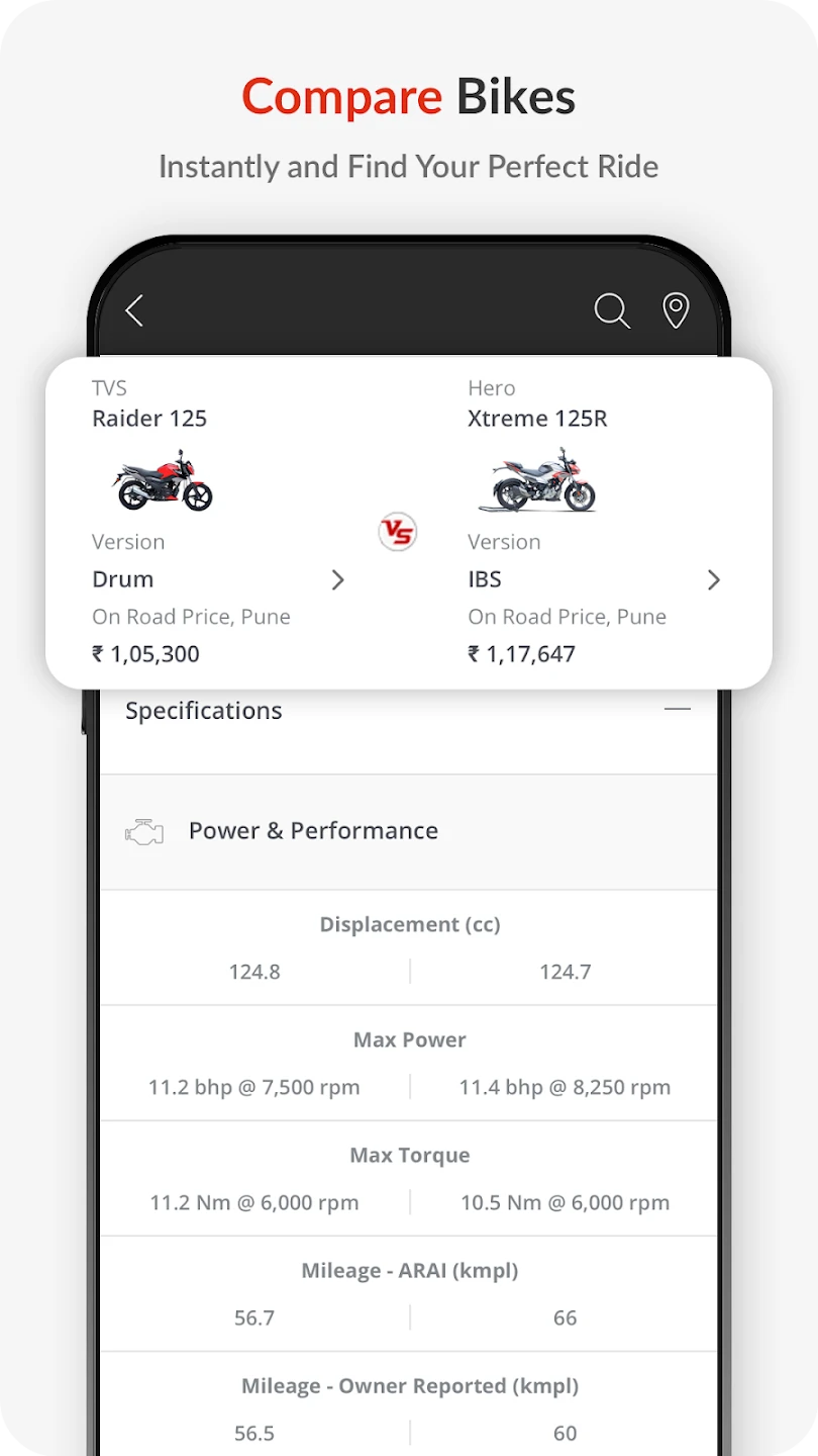 - Comprehensive Bike Database: This feature allows users to search, filter, and view specifications for thousands of two-wheelers. Users can easily compare engine sizes, mileage, features, and pricing between multiple bikes relevant to their needs, helping them make an informed choice faster.