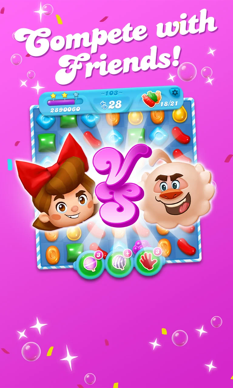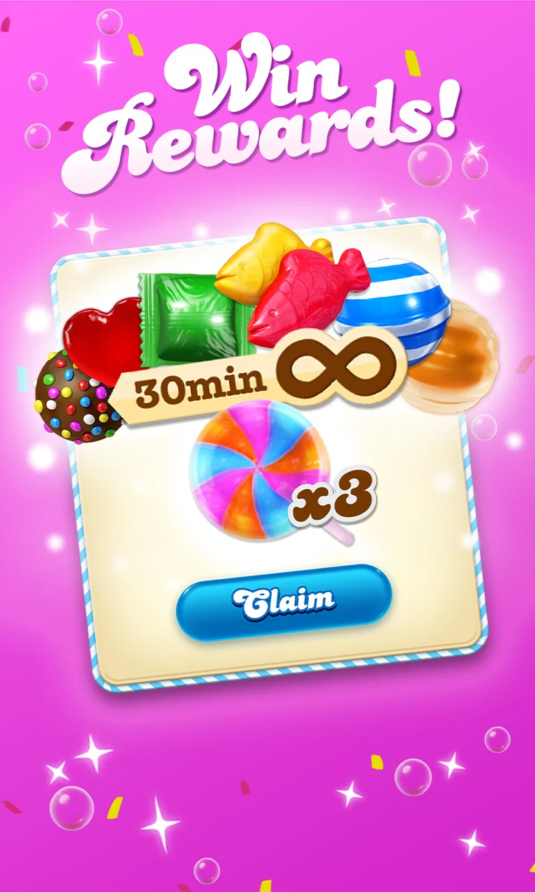 - [Any Special Systems]: The game incorporates features like “Spins” (currency for making random swaps), “Soda Boosters” that enhance Soda Maker fills, and regular seasonal “Candy Crush Worlds” events, which unlock special worlds filled with unique challenges and rewards, boosting engagement and providing fresh content.