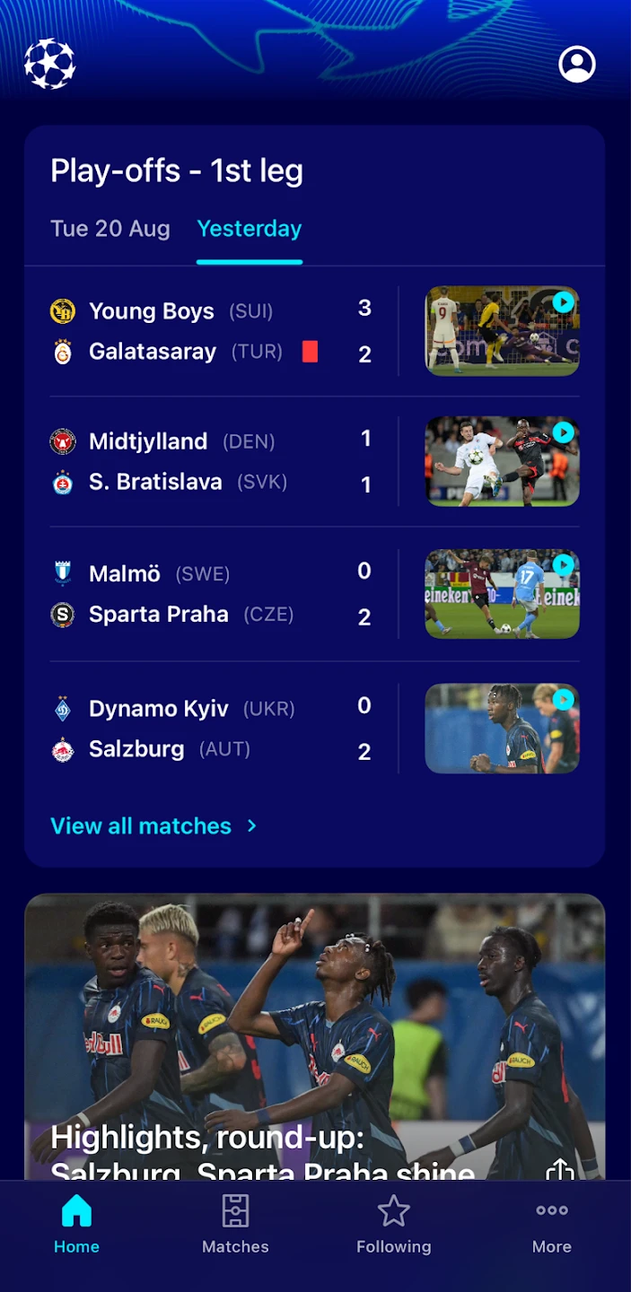 - Player & Team Statistics: Dive deep into advanced performance metrics including player ratings, possession data, and heat maps from the official match center. This analytical feature helps fans understand tactical decisions and player impacts in key moments, adding a new layer of football intelligence to the Champions League experience.
