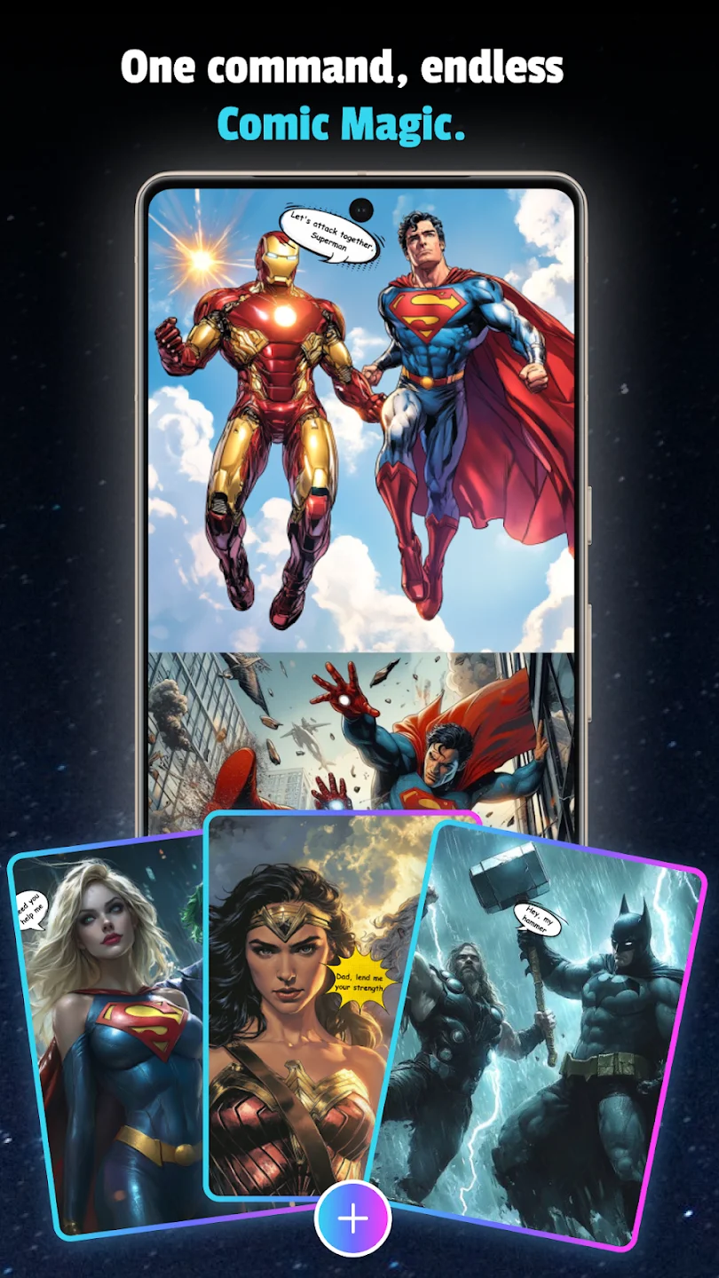 - Text-to-Image Comic Panel Generation: Provide the text prompt describing characters, backgrounds, actions, and specific scene details, and the AI interprets it to render detailed comic panels. Simultaneously with prompt improvements, colors, styles, and artistic filters can be chosen, resulting in visually appealing and consistent imagery that directly supports your comics narrative.