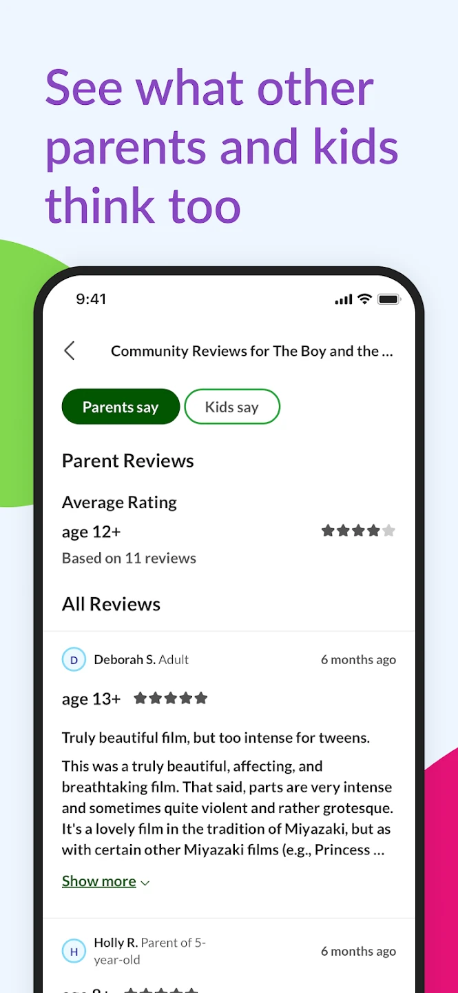 A: It’s a mobile tool for searching and reading reviews on movies, TV shows, books, and games from Common Sense Media. These reviews help you understand if media is appropriate for different ages, including ratings for things like violence, language, and learning value.