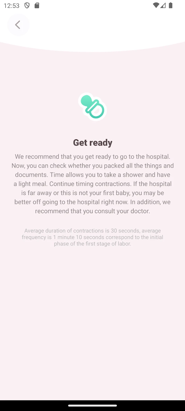 - Visual and Audio Prompts: The app features customizable alerts to signal when a contraction is timed out or when it’s time to press the button again. For example, a soft sound might beep every 15 seconds during a contraction, helping users maintain accurate marking even while focused on breathing or pushing. This significantly improves usability by reducing user burden during intense moments.