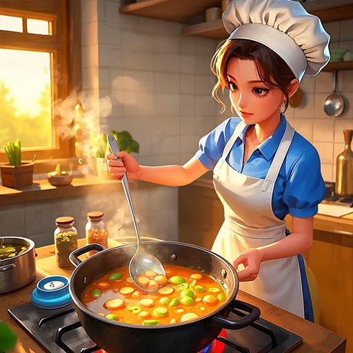 - [Visuals or Art Style]: The visuals are typically clean, colorful, and cartoonish. Use detailed animations for cooking actions and cheerful character designs to create an engaging and accessible atmosphere.