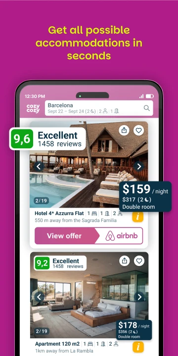 • Streamlined Multi-Channel Bookings: Securely book directly through the app with various payment methods, or view originals/invoices easily, with integration to hundreds of external sites ensuring competitive, transparent pricing across all platforms—perfect for price-comparison shopping.