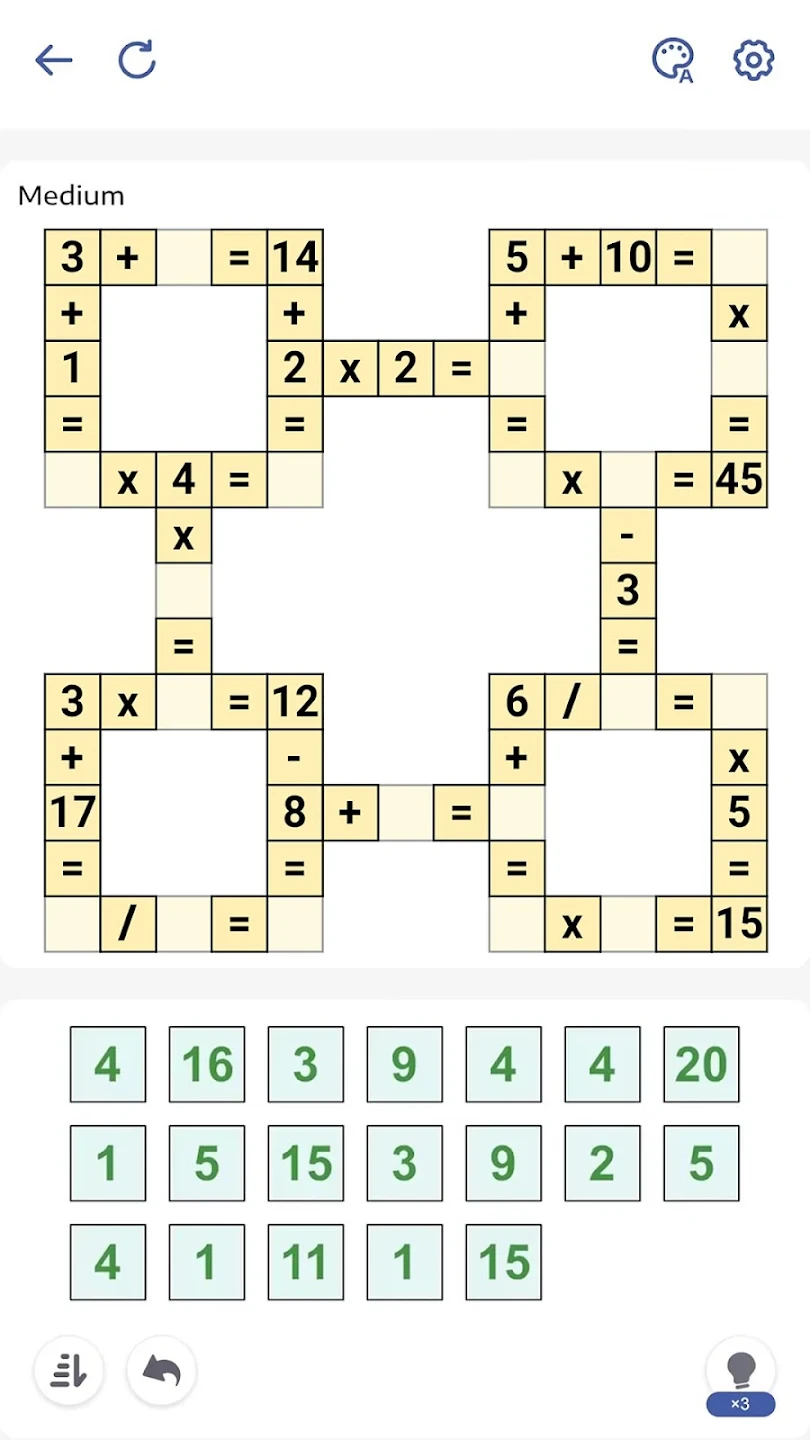 - Step 1: Open the game and select “Easy Mode” for your first level. You’ll see a small grid (usually 4×4) with some pre-filled numbers and operation symbols.