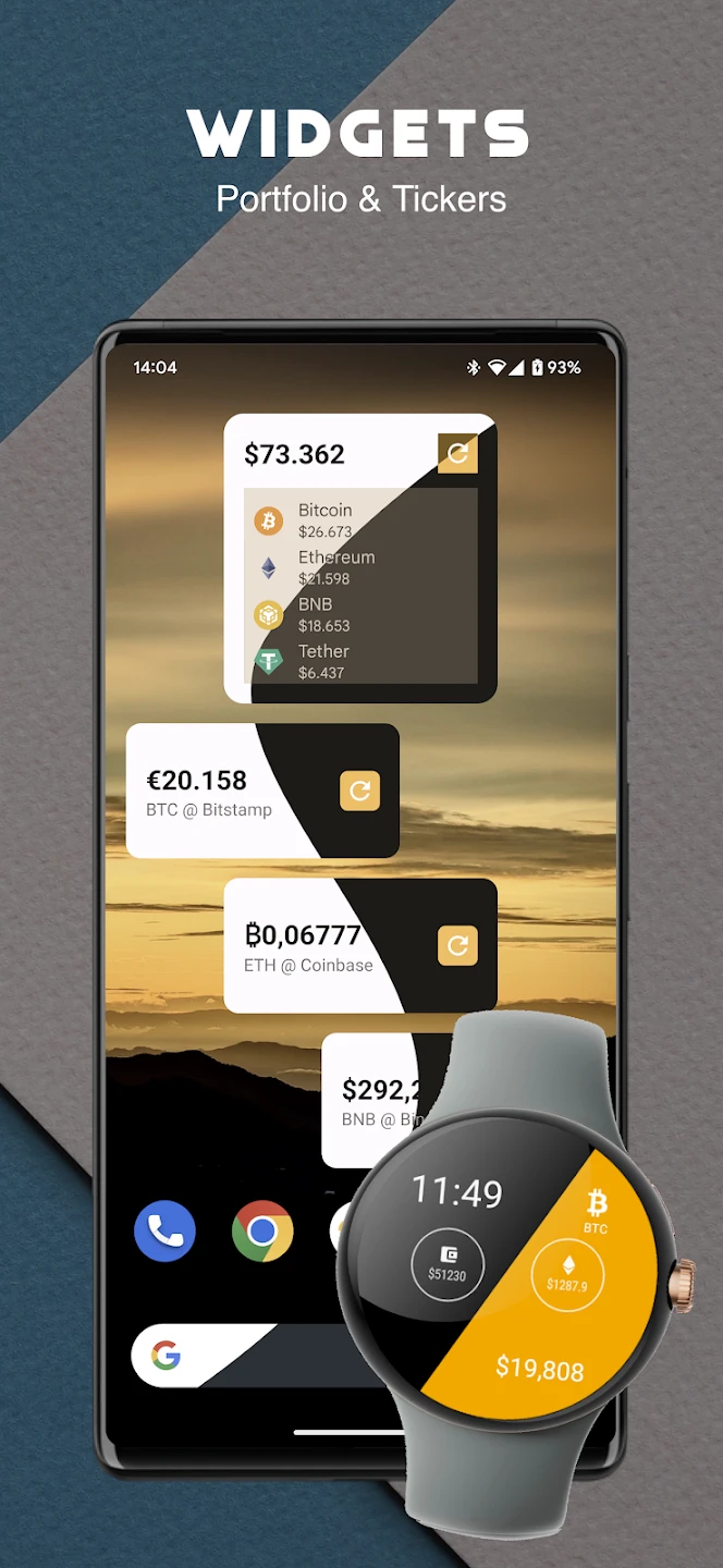 - Portfolio Tracker: Create and manage personal crypto portfolios with automatic value calculations in USD/EUR/BTC. The feature includes visual performance reports, spending breakdowns, and customizable alerts for price movements.