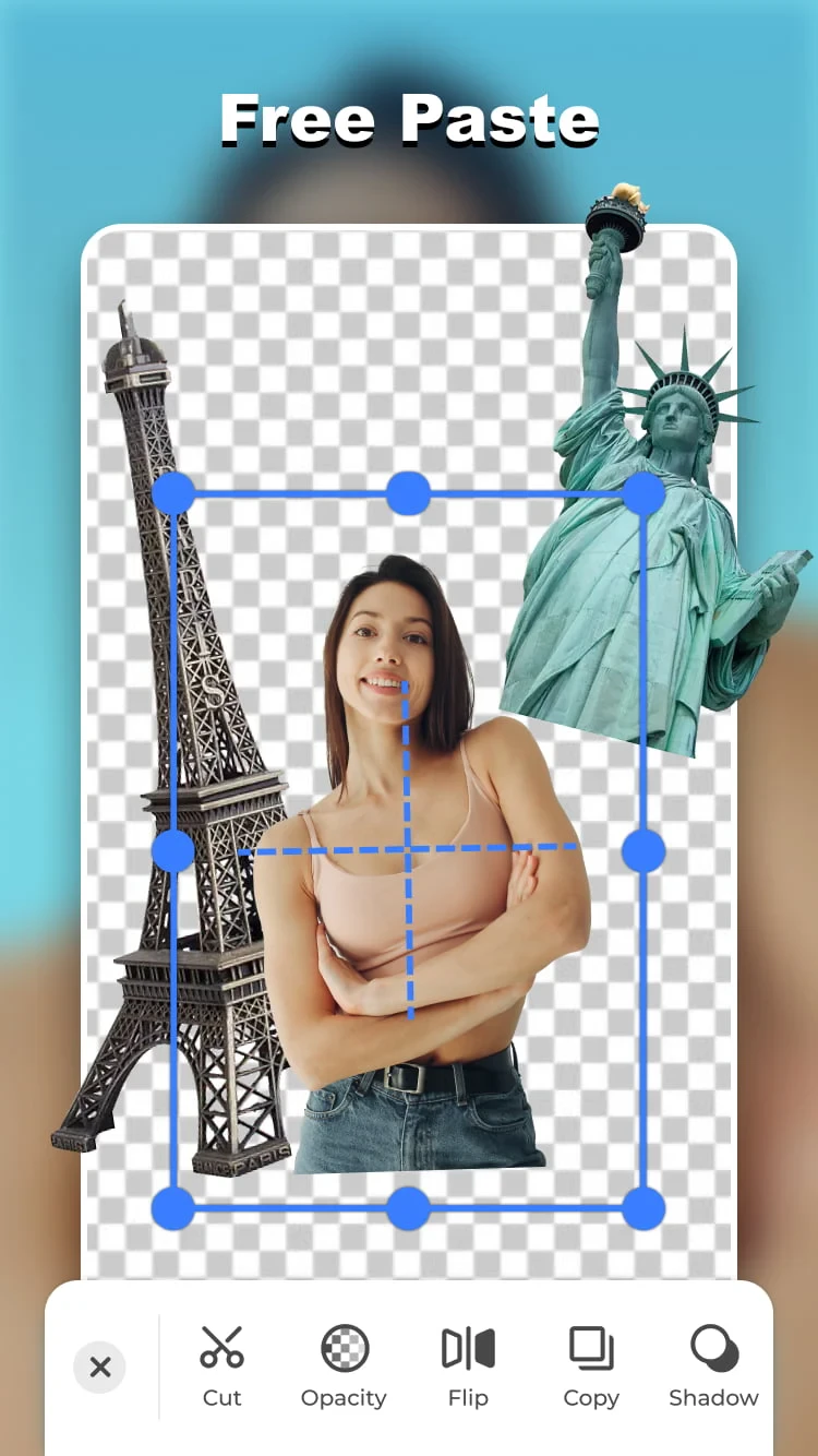 • Multi-Image Editing: Import multiple images and work across them simultaneously, cutting content from one and pasting it onto others. This is perfect for creating collages or combining elements from different photos for artistic effects or practical purposes like combining multiple photos into a single frame.