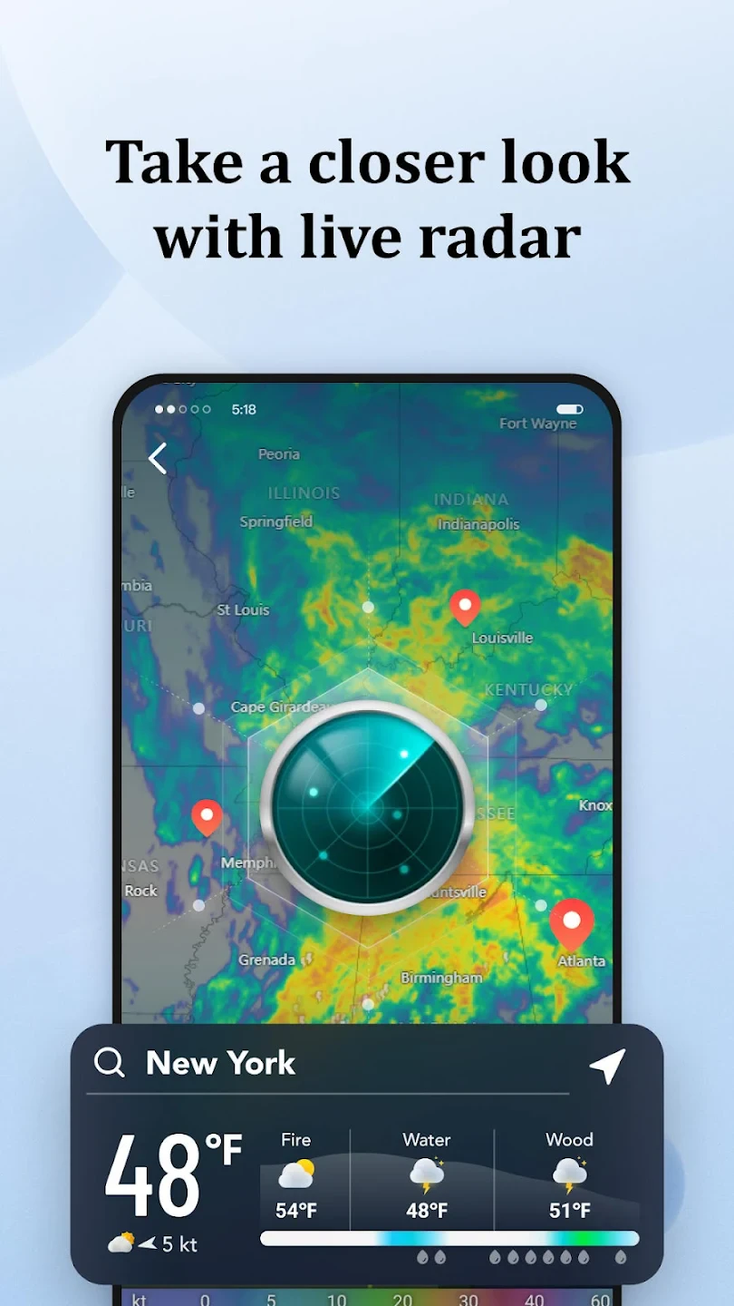 - Real-Time Radar Visualization: Instantly view evolving weather systems through detailed radar imagery that updates frequently, allowing you to track storms and precipitation patterns. This feature helps you quickly understand current conditions and anticipate changing weather before it impacts your activities.