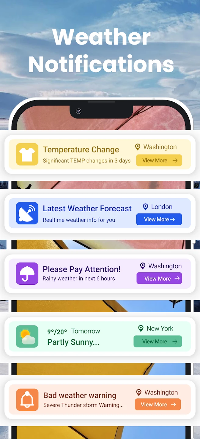 - Multi-Location Support: Allows users to save and monitor weather conditions for multiple addresses or points of interest, perfect for travelers, parents coordinating with different family members, or those with homes and offices in separate locations. This feature provides a seamless experience when planning trips or managing logistics across different areas.