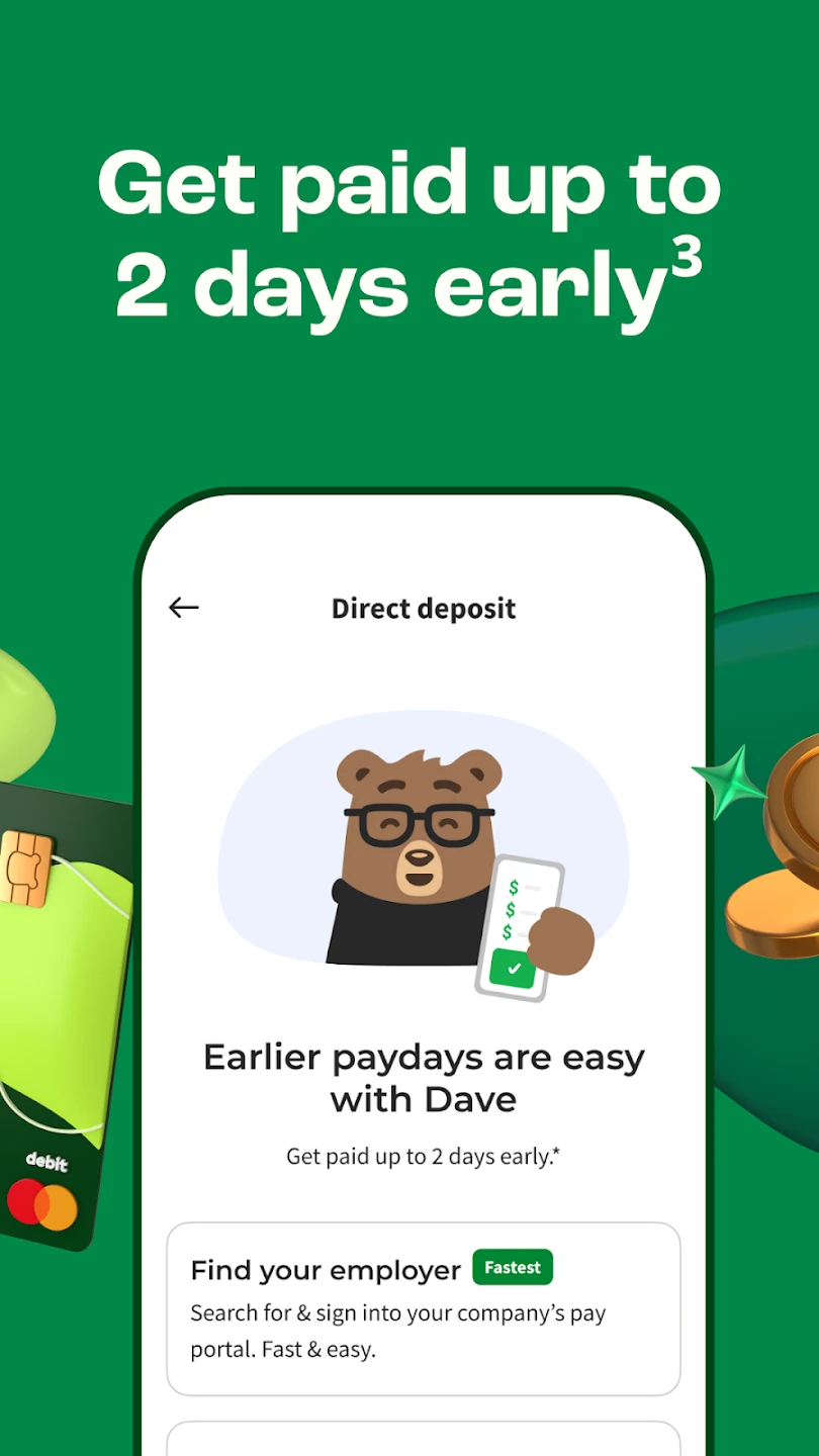 **Dave – Fast Cash & Banking** is a mobile application designed to streamline everyday banking tasks, allowing users to deposit cash, transfer funds, and manage their accounts directly from their smartphones. It’s built for individuals seeking quick, accessible financial solutions, particularly helpful for people who need immediate cash access or want to simplify their banking routine. The app combines speed with convenience, making traditional banking more approachable for modern users.
