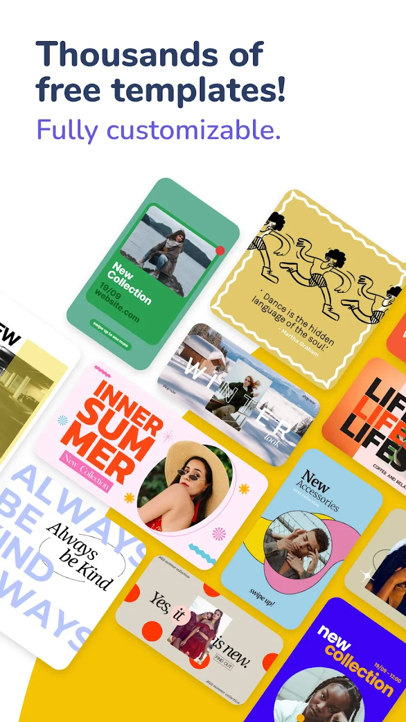 Focuses on video-based design with robust animation tools. Known for its massive video template collection and simple drag-and-drop interface ideal for social media video creators. |