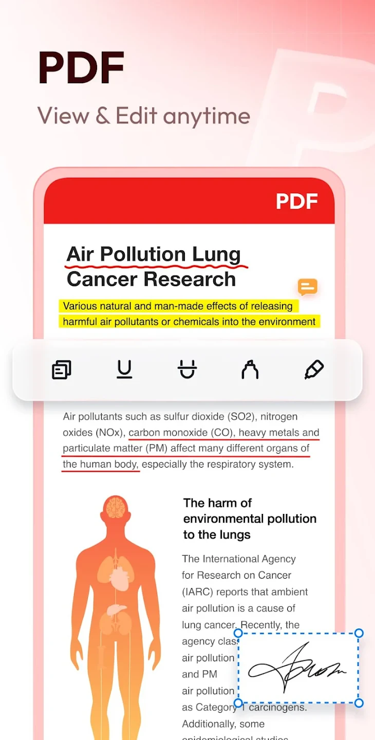 The Document Reader & PDF Editor is a versatile tool designed for viewing, editing, and manipulating various document formats, including PDFs. It allows users to read text, view images, and even modify the content or formatting directly within the application, catering primarily to professionals, students, and anyone needing efficient access to document information and editing capabilities.