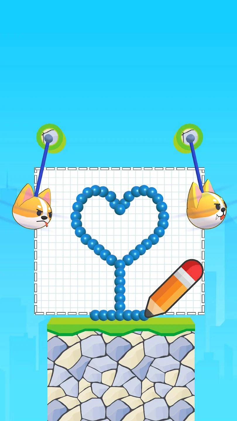- Core Gameplay Loop: The main objective is to free a bound dog by cleverly drawing tools like bridges, ropes, or platforms onto the screen. Players interact by tapping and dragging to create these items, which then affect the dog, objects, and environment according to basic physics rules.