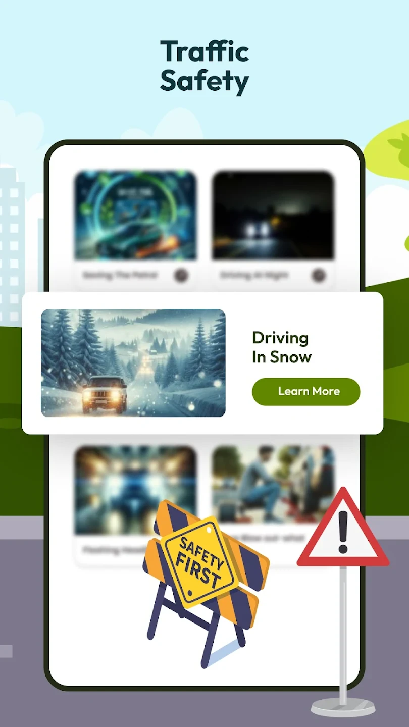 A comprehensive driving theory app focused on practice tests and score tracking. Features include progress visualization and topic-specific practice modes ideal for self-study. |