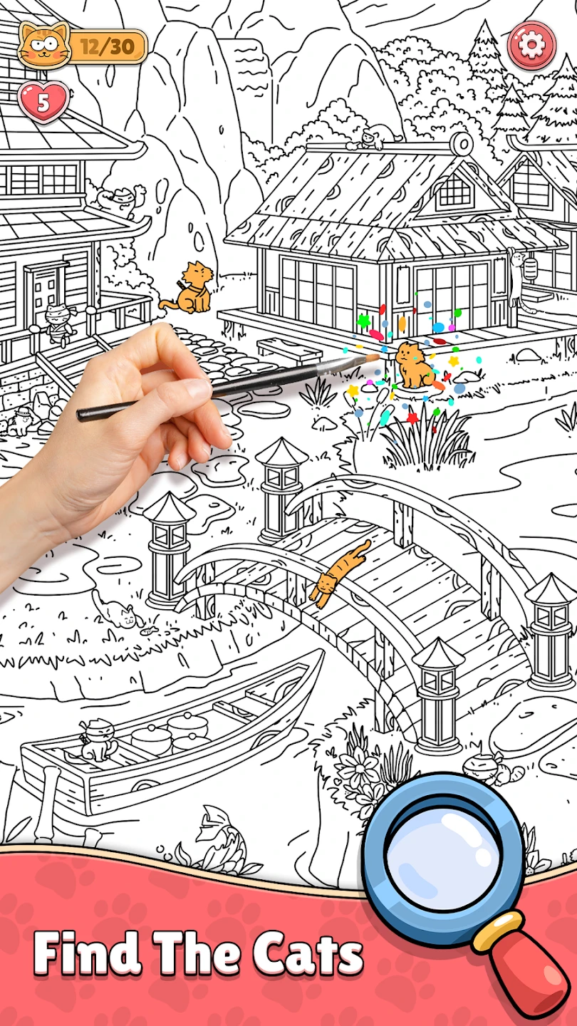 The gameplay of “Find The Cat – Spot It!” offers a delightful blend of exploration and puzzle-solving, set within vibrant, hand-drawn visuals full of personality. The game’s primary appeal lies in its relaxed yet intriguing storyline, focusing on the cat’s quest, and its addictive, bite-sized puzzle challenges designed for short play sessions.