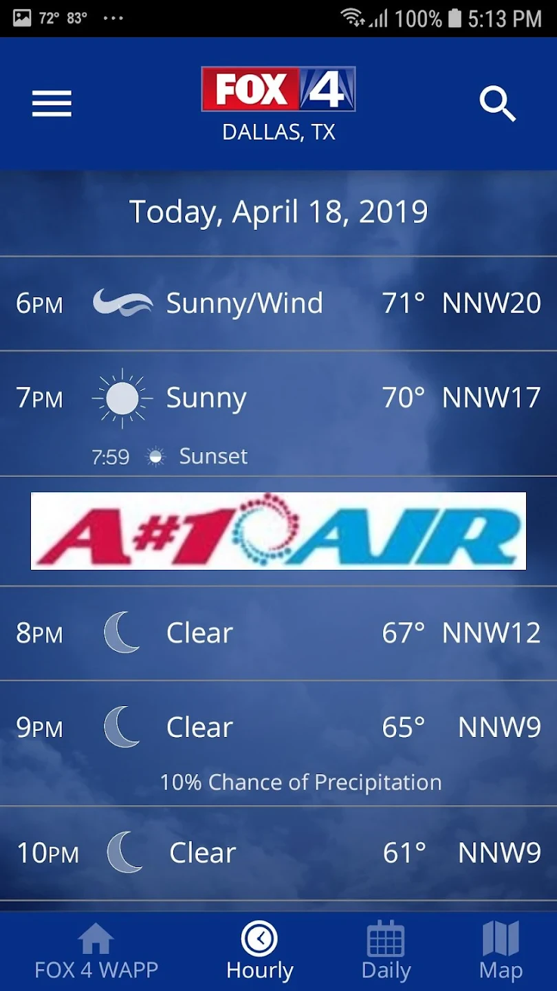 - Real-Time Forecast: Get detailed, localized weather predictions including temperature, chance of precipitation, humidity, wind speed, and conditions hour-by-hour or day-by-day for your specific location within DFW. This helps you plan your day effectively, knowing what to expect right where you are.
