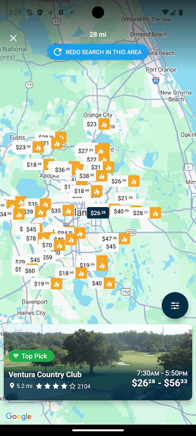 - Additional Travel May Be Required for tee times not located immediately near the user’s home