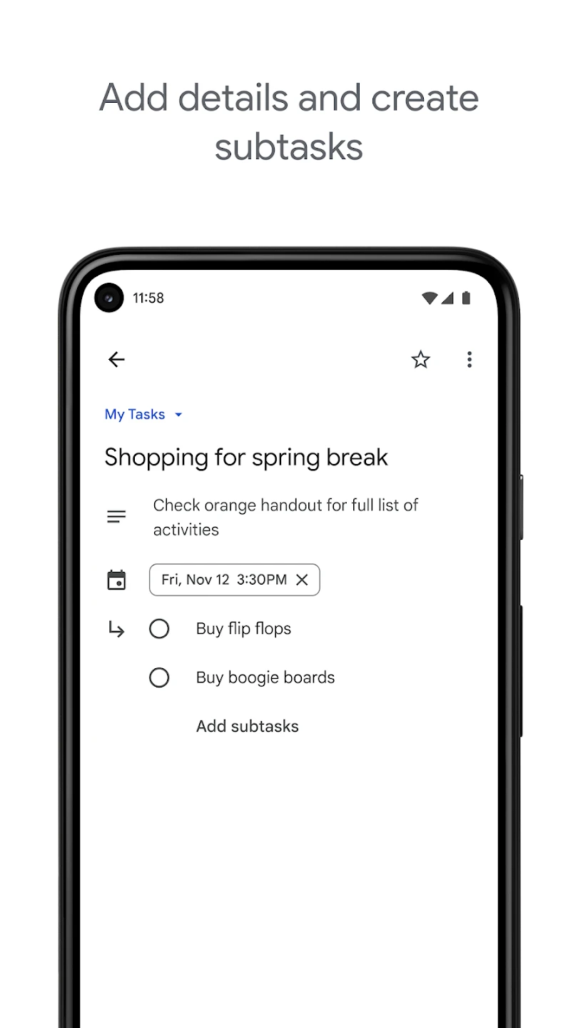 The Google Tasks app is a free productivity tool integrated into Google Workspace, helping users organize and track their daily, weekly, or monthly tasks across devices. It enables seamless task creation, prioritization, and tracking directly from Gmail or within dedicated task lists, serving individuals and teams seeking efficiency. Google Tasks connects with other Google services and third-party apps, making it ideal for personal organization, project management, or collaborative planning.