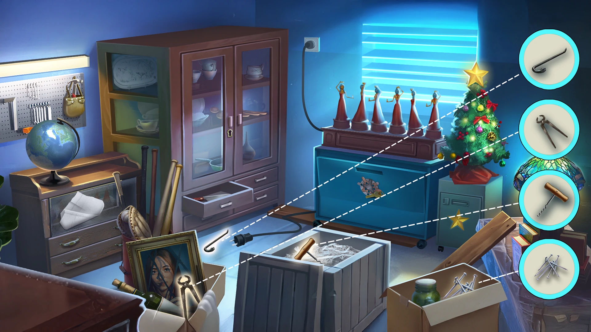 - Step 2: Explore the initial room by dragging your view around, tapping objects for closer examination, and clicking interactive items. Your objective is to find three hidden clues within the time limit.