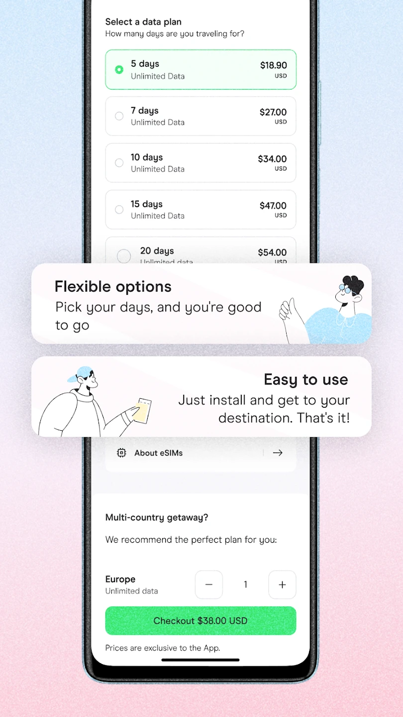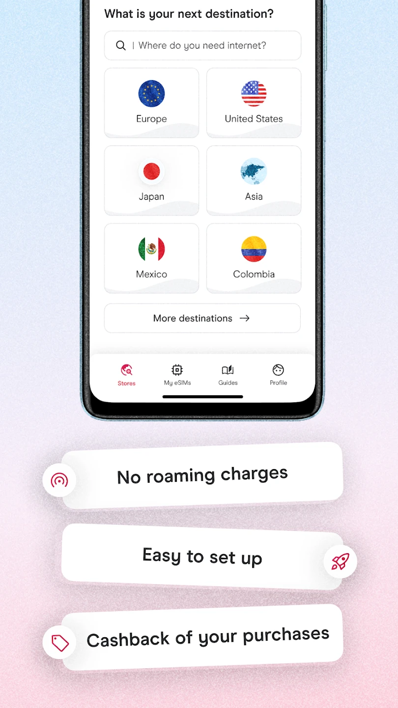 This app offers a similar service, allowing users to purchase eSIMs for specific countries with various data plans. Known for its extensive carrier network coverage in many destinations and simple activation process. |
