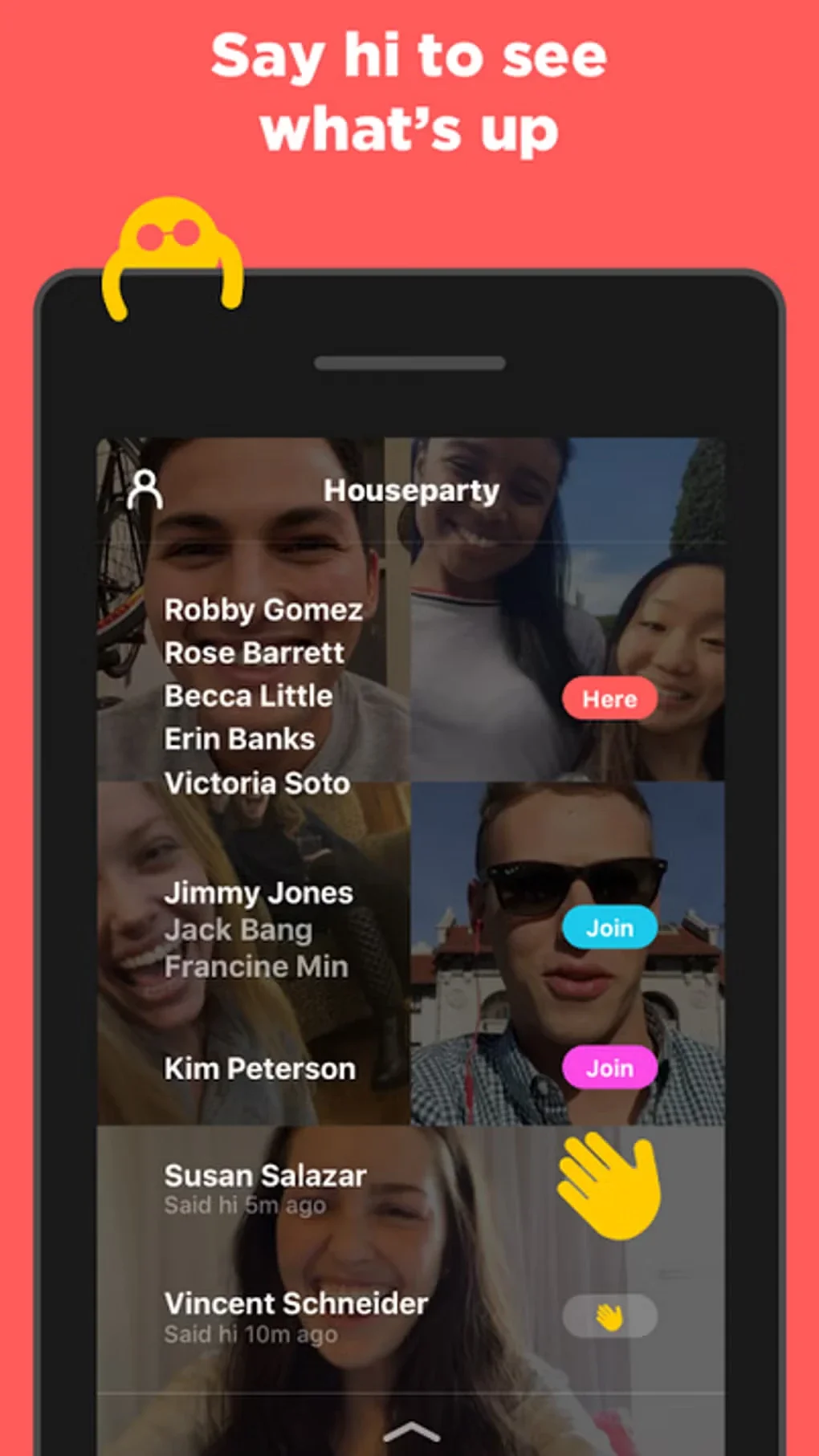 Houseparty is a social networking app designed for interactive, video-based parties where friends connect through voice, video, and text. It enables real-time group chats, virtual game nights, and shared experiences, making it a hub for remote socialization across devices.