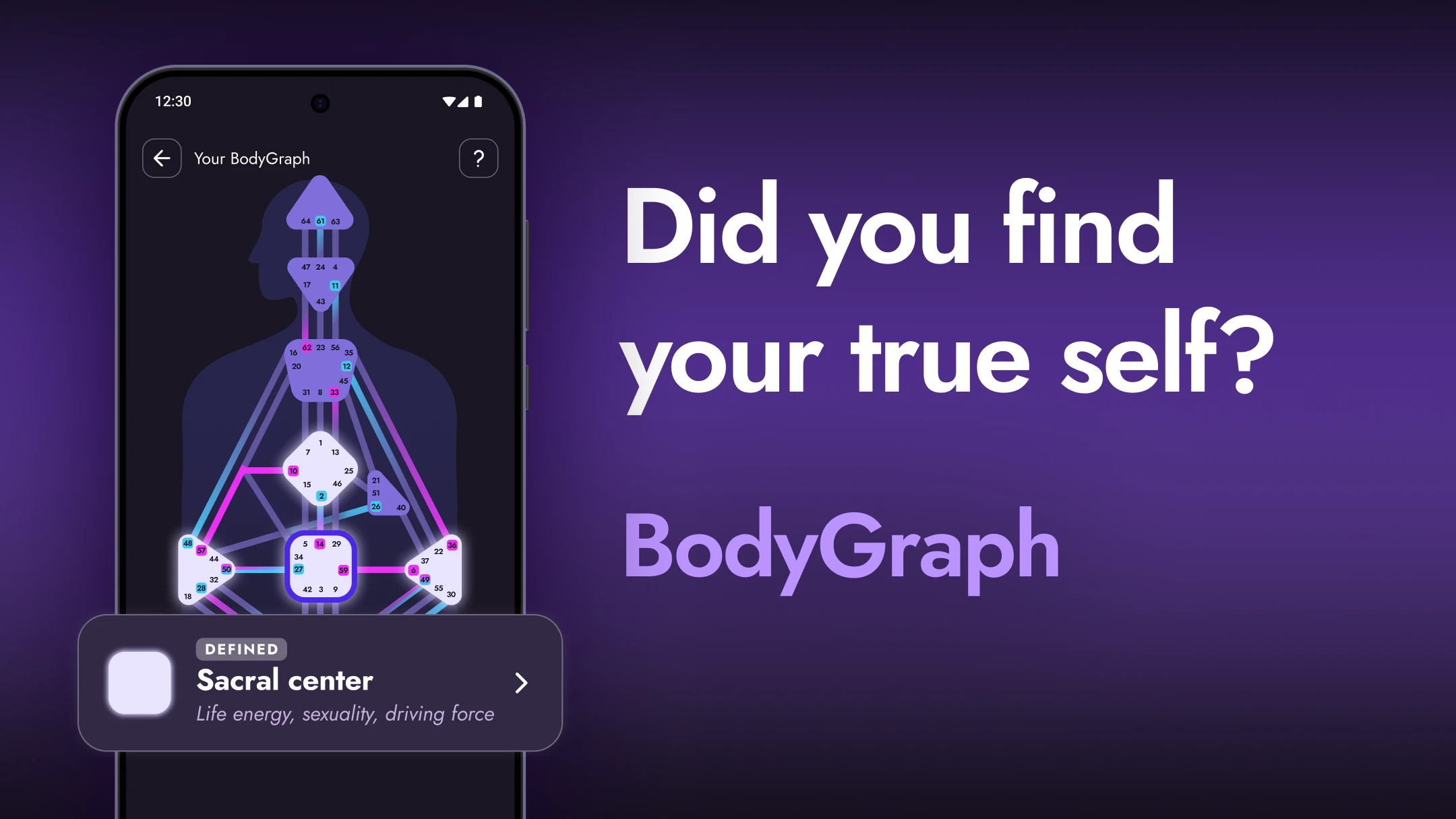 - Dynamic Body Graph: This feature provides an interactive visual representation of the user’s energetic system, showing where life force energy flows and where it pauses. By understanding the Body Graph’s unique pattern, users gain insights into their decision-making processes and life strategies, making daily choices more authentic and aligned with their inherent design.