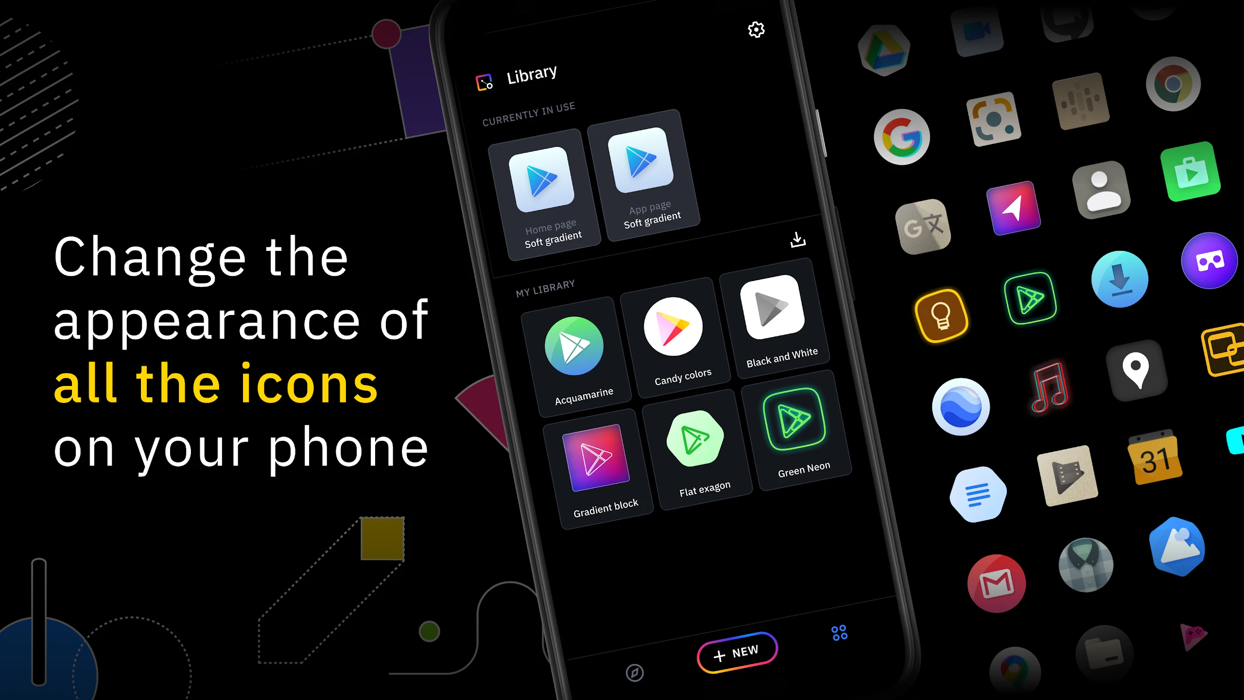 • Theme Management: Organize multiple icon themes, switch between them instantly, and create device-wide customization packages. This feature streamlines managing different visual identities, making it easy to rotate between personal and professional themes.