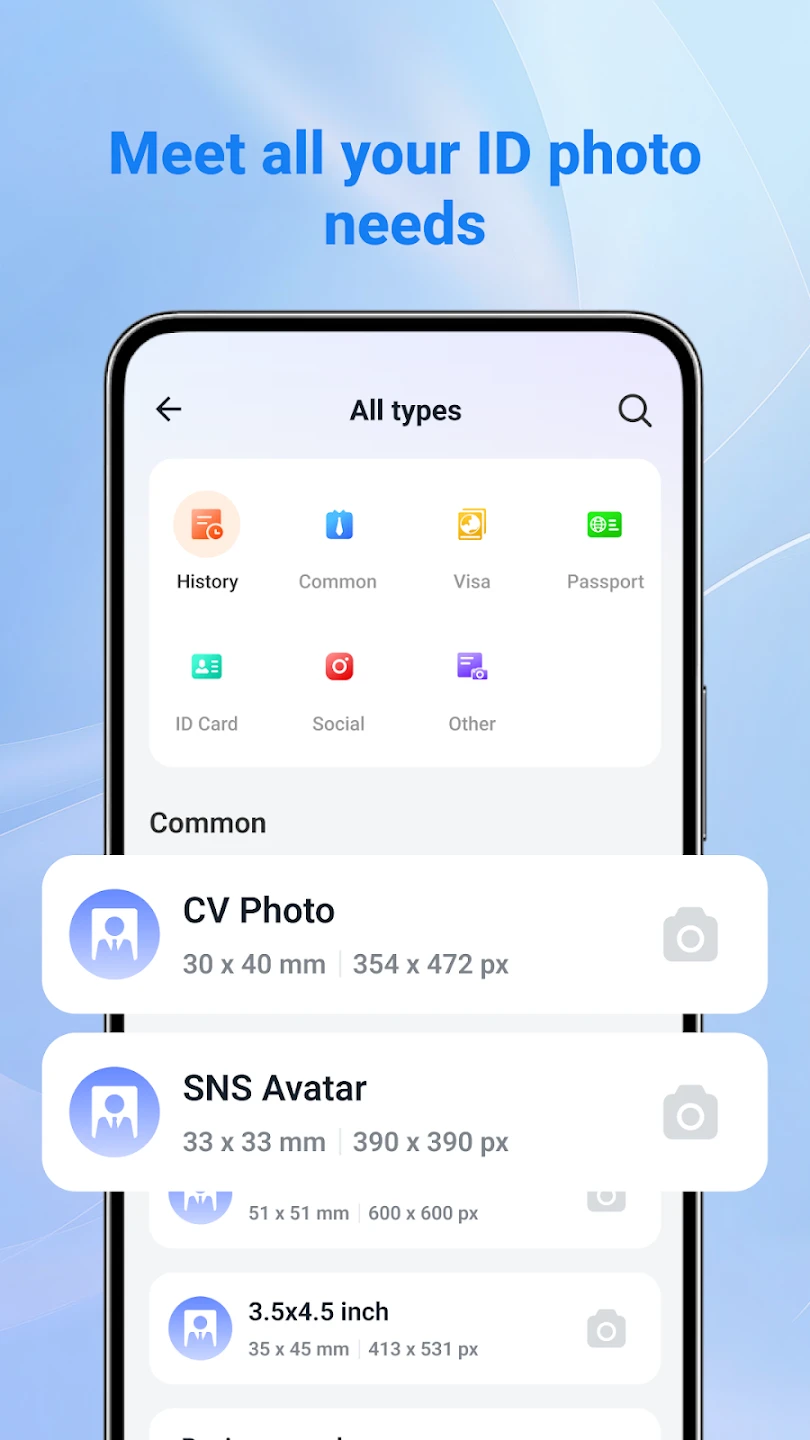 - Easy Photo Upload: Simply select your image from the phone’s gallery or camera roll to get started quickly, bypassing the need for complex manual searches to find the perfect photo. This saves significant time pre-processing, allowing you to focus on getting your ID photos ready faster.