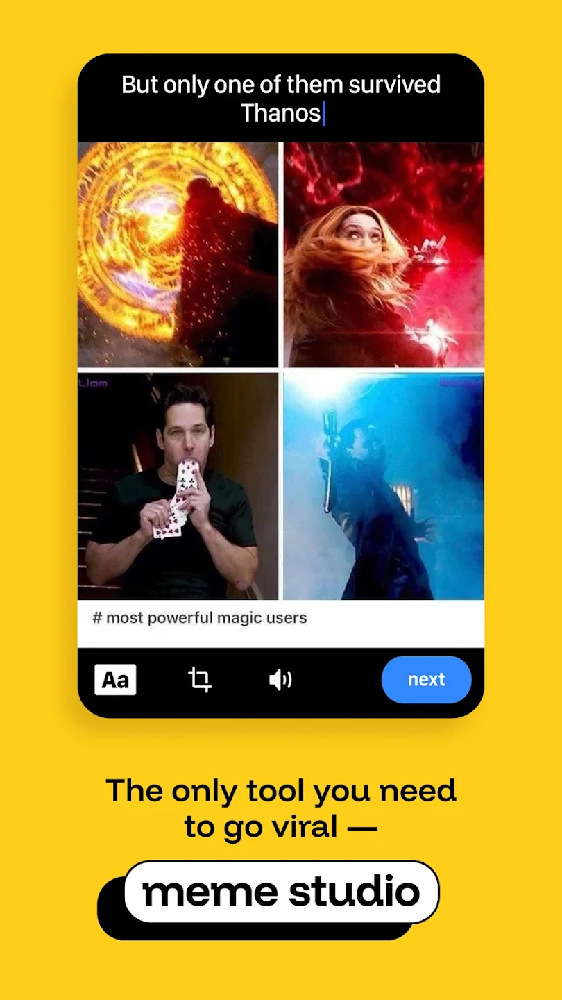 This app offers a simple way to create memes from templates or upload your own images, known for its extensive template library and easy-to-use editor. |