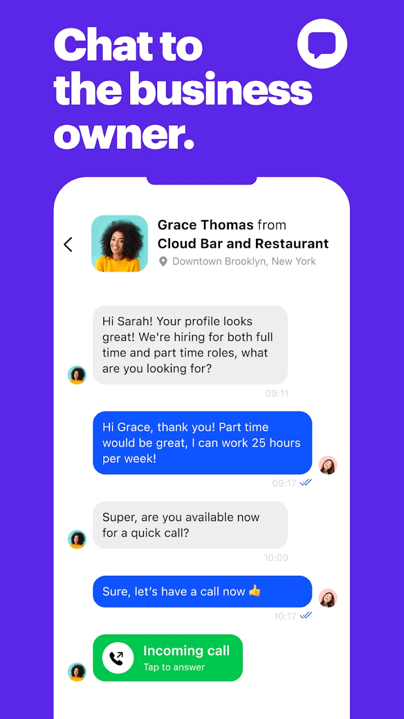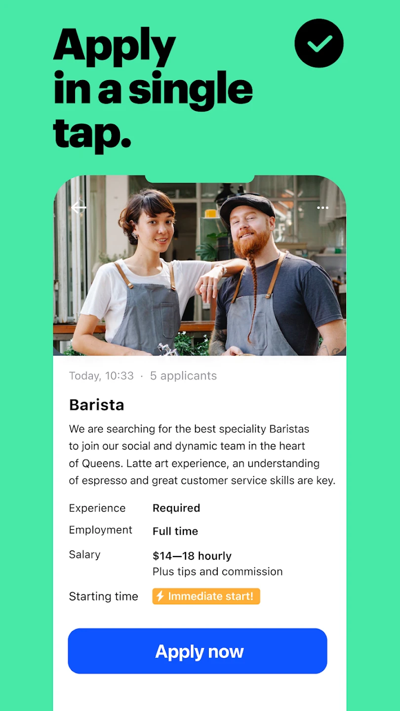 This app offers similar job search tools along with career development resources and mentor matching, emphasizing long-term growth alongside immediate job placement. |