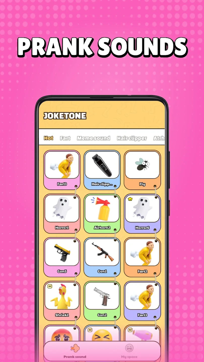 Joketone-Air Horn Fart Sounds is a playful app designed to provide users with a collection of humorous, digitally enhanced fart sounds, including the surprisingly loud “air horn” effect. It allows users to select, preview, and play these sounds directly, making it a go-to for unexpected moments during social gatherings or online interactions, primarily targeting pranksters and those looking for a light-hearted laugh.