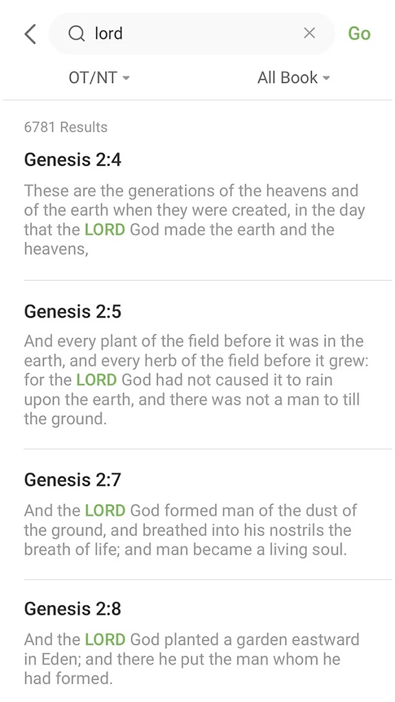 - Search Functionality: Easily locate specific Bible verses or keywords within the King James Bible – Verse+Audio collection using the built-in search tool. Instead of flipping pages, users can instantly find relevant scriptures or topics, saving valuable time during personal study or research using the King James Bible – Verse+Audio app.