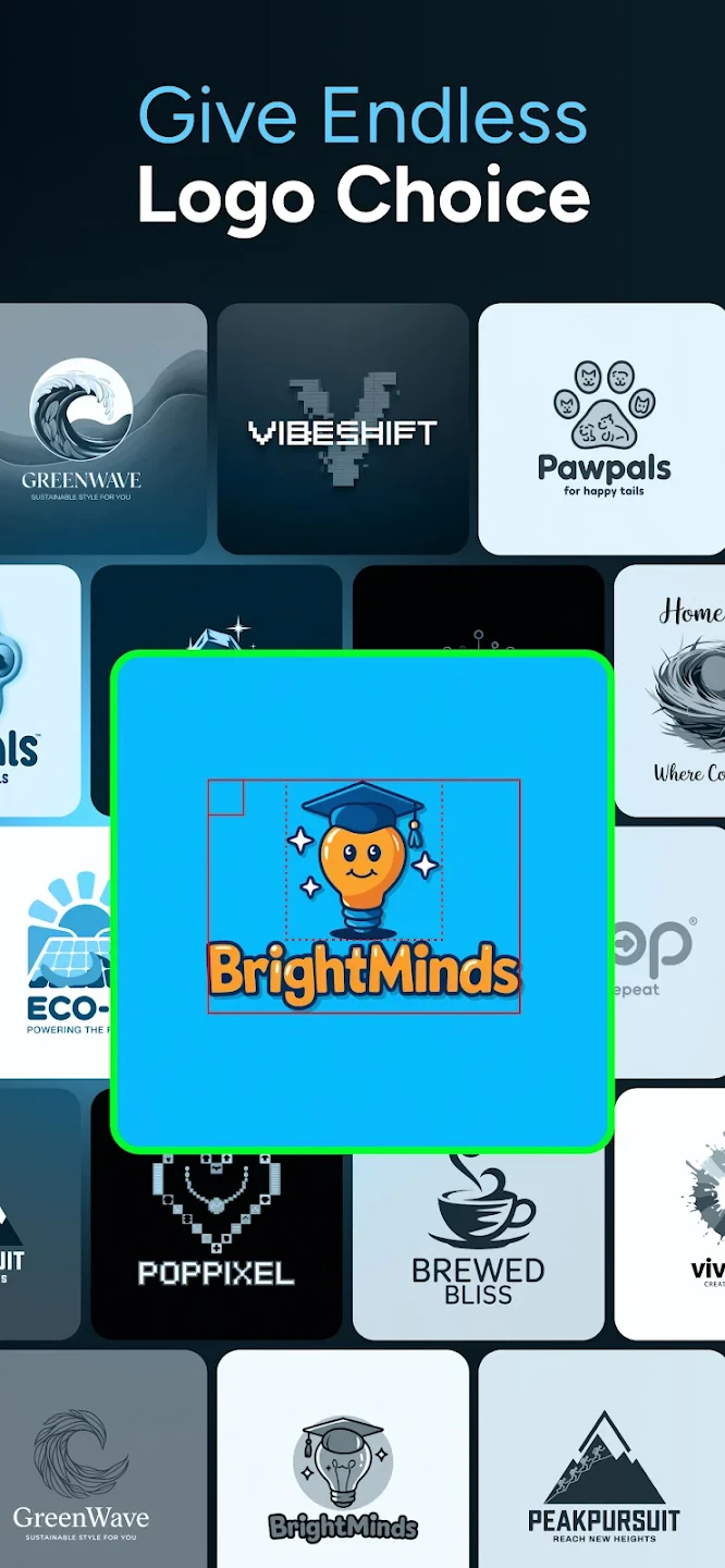- Stylistic Recommendations and A/B Testing: If you provide information about your industry or desired branding, the app’s intelligent algorithms offer suggestions for logo styles, color palettes, and uses A/B testing to help you visualize different branding outcomes.