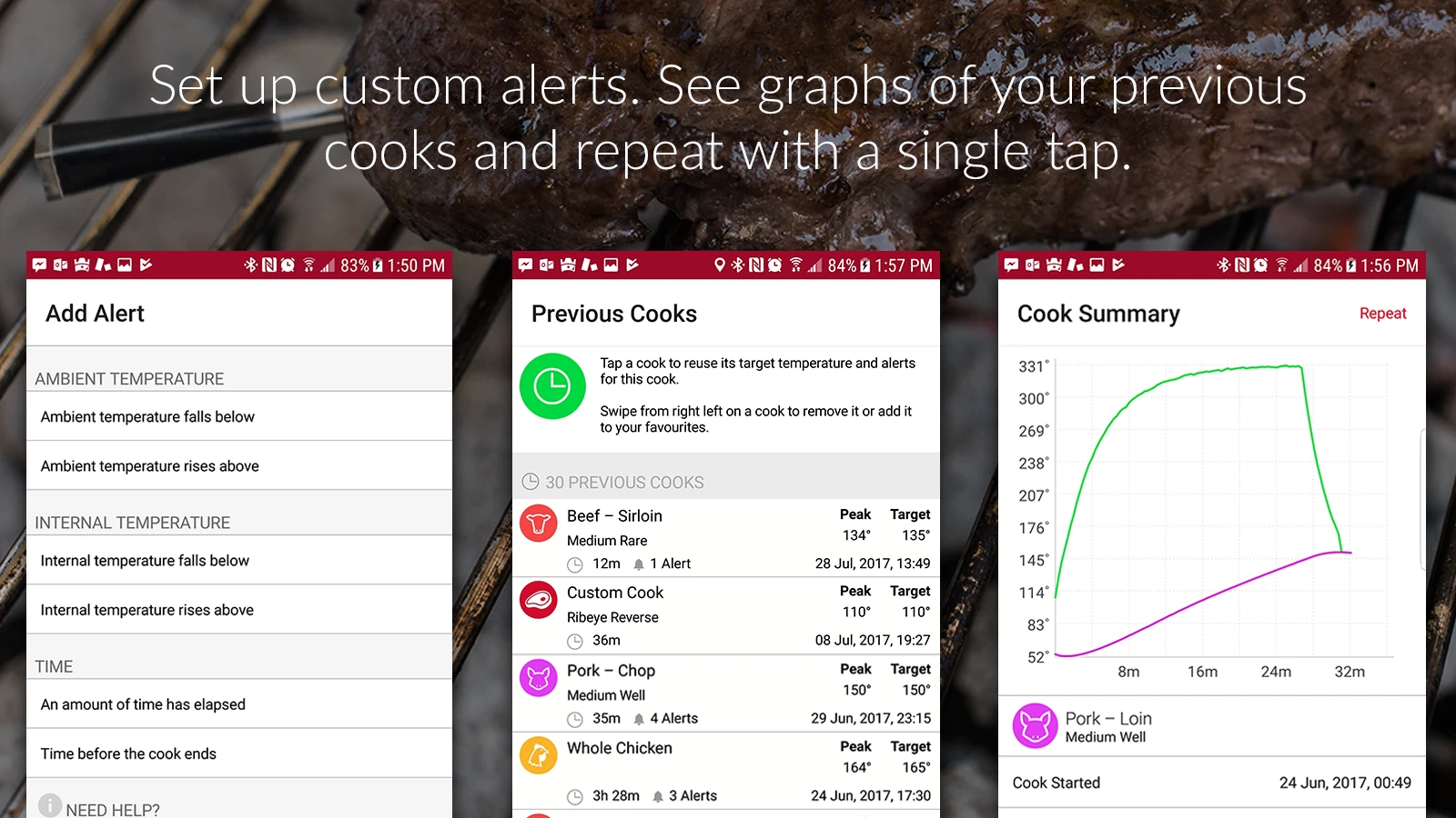 - Preset Profiles & Target Temperatures: The app comes pre-loaded with common food profiles (e.g., steaks, poultry, roasts, fish) and their recommended safe target temperatures. This feature saves users the hassle of remembering varying internal temps for different cuts of meat, helping ensure consistent results and food safety by simply selecting the desired food item.