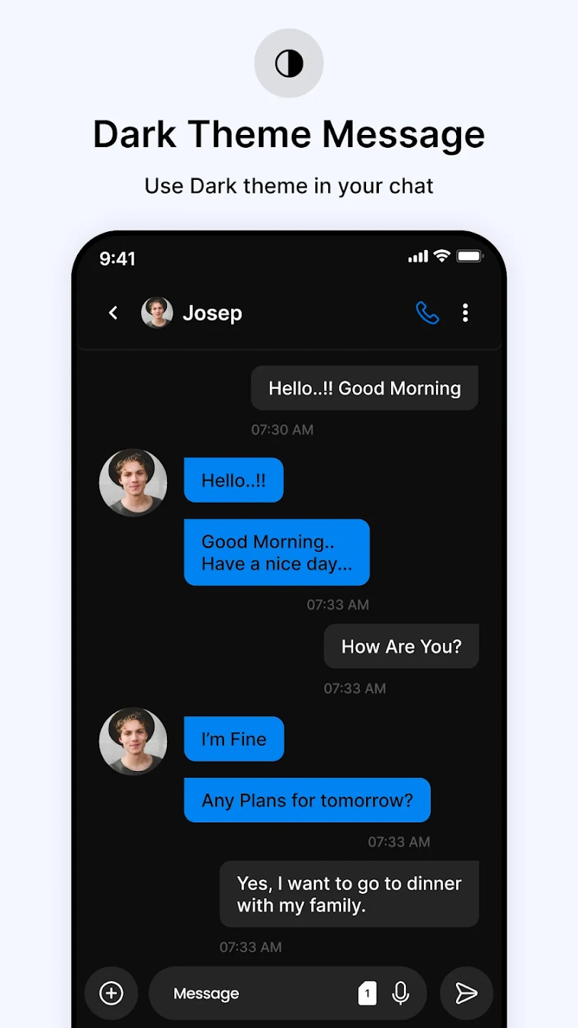 • Custom Themes & Layouts: Users can personalize the interface appearance and message layout for improved user experience. These aesthetic choices support branding for businesses using the app internally and help reduce eye strain during prolonged usage.