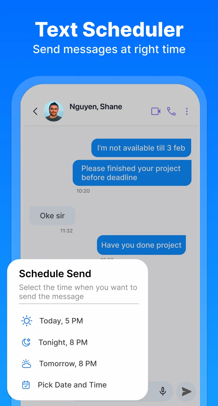 - Message Scheduling (Send Later): Easily compose a text message and set it to be delivered at a specific future date and time. This feature is incredibly useful for individuals who want to send messages but are physically unavailable, like when traveling or in meetings, ensuring communication doesn’t pause.