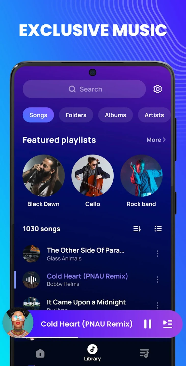 - Library View: Browse and search your entire collection of downloaded music files in one place. Benefit: Quickly find specific artists, albums, or songs across your large offline music library, eliminating the hassle of navigating through file system folders or dealing with fragmented playlists across different devices.