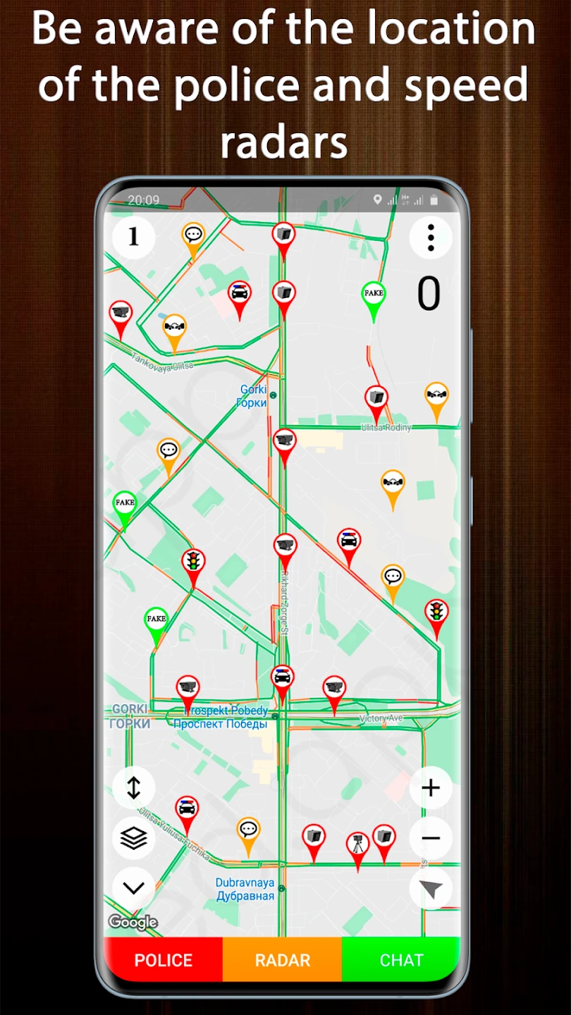- Zone Detection Technology: The app leverages user reports and a database of known zones to display potential police radar hotspots on a map, helping drivers anticipate and avoid speeding in detected areas.