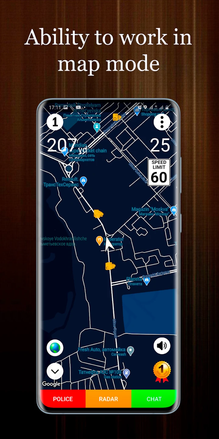 • Live Traffic Updates: Integrates with live traffic information to warn users about heavy congestion zones where police presence is more likely. By anticipating traffic situations, drivers gain time to manage their speed appropriately and avoid potential violations in challenging driving conditions.
