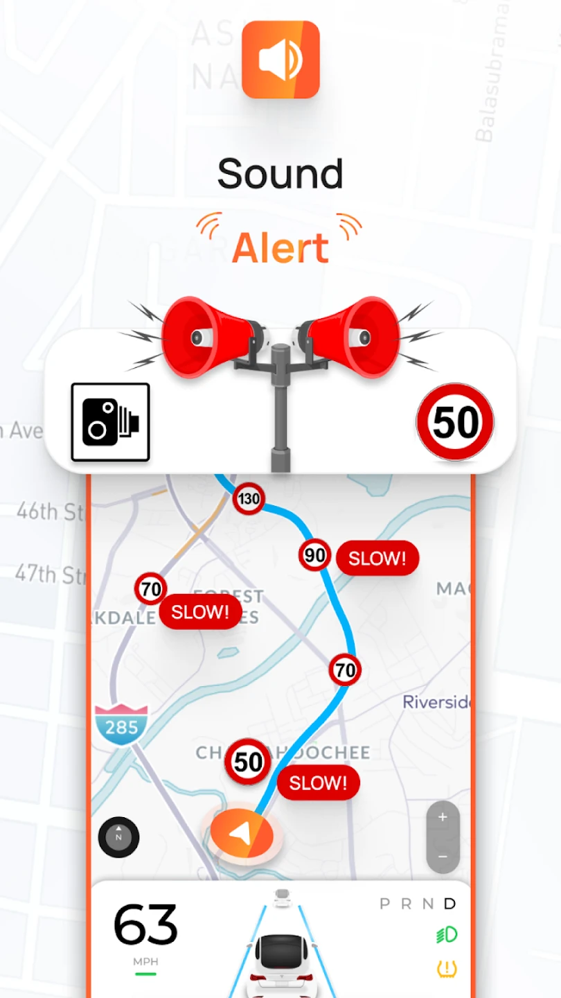 - Speed Camera Detection: Utilizing GPS and historical data, this system alerts drivers to the presence of fixed and sometimes mobile speed cameras ahead, enabling them to adjust their speed safely well before reaching checkpoints and avoid unnecessary fines.