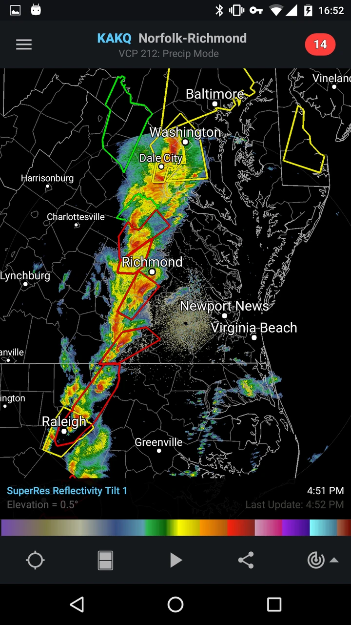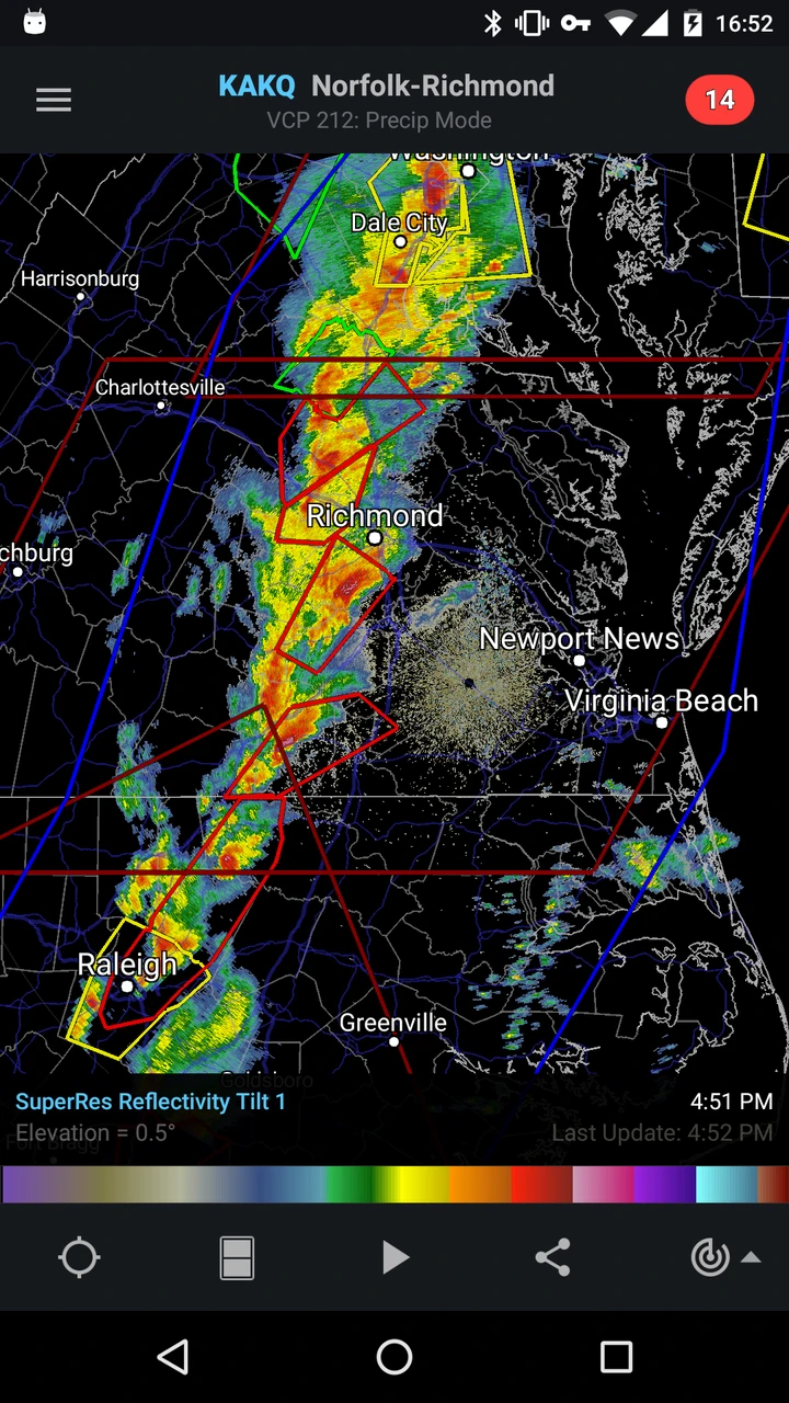 - Map Tools & Controls: The app includes intuitive map navigation tools, featuring panning, pinch-to-zoom, and the ability to toggle different radar layers (reflectivity, velocity base, storm relative velocity) or overlay overlays like county boundaries and significant weather warnings. These controls simplify complex data interpretation, making it easier for users to focus on specific areas or weather phenomena relevant to their needs.