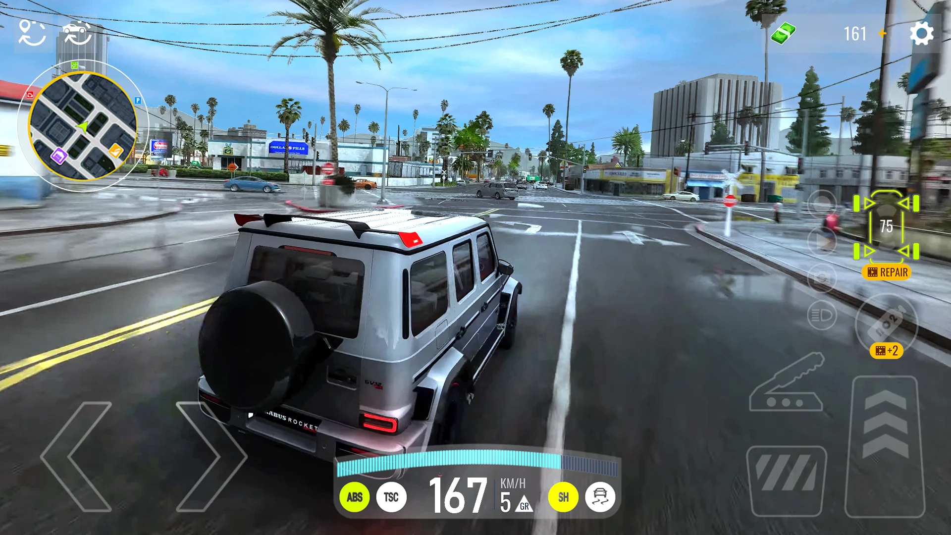 - Controls or Interface: The touch-screen optimized controls use on-screen buttons for acceleration, braking, steering, and nitrous boost. The intuitive interface includes a minimap, vehicle status display, and quick-access customization panels for seamless gameplay.