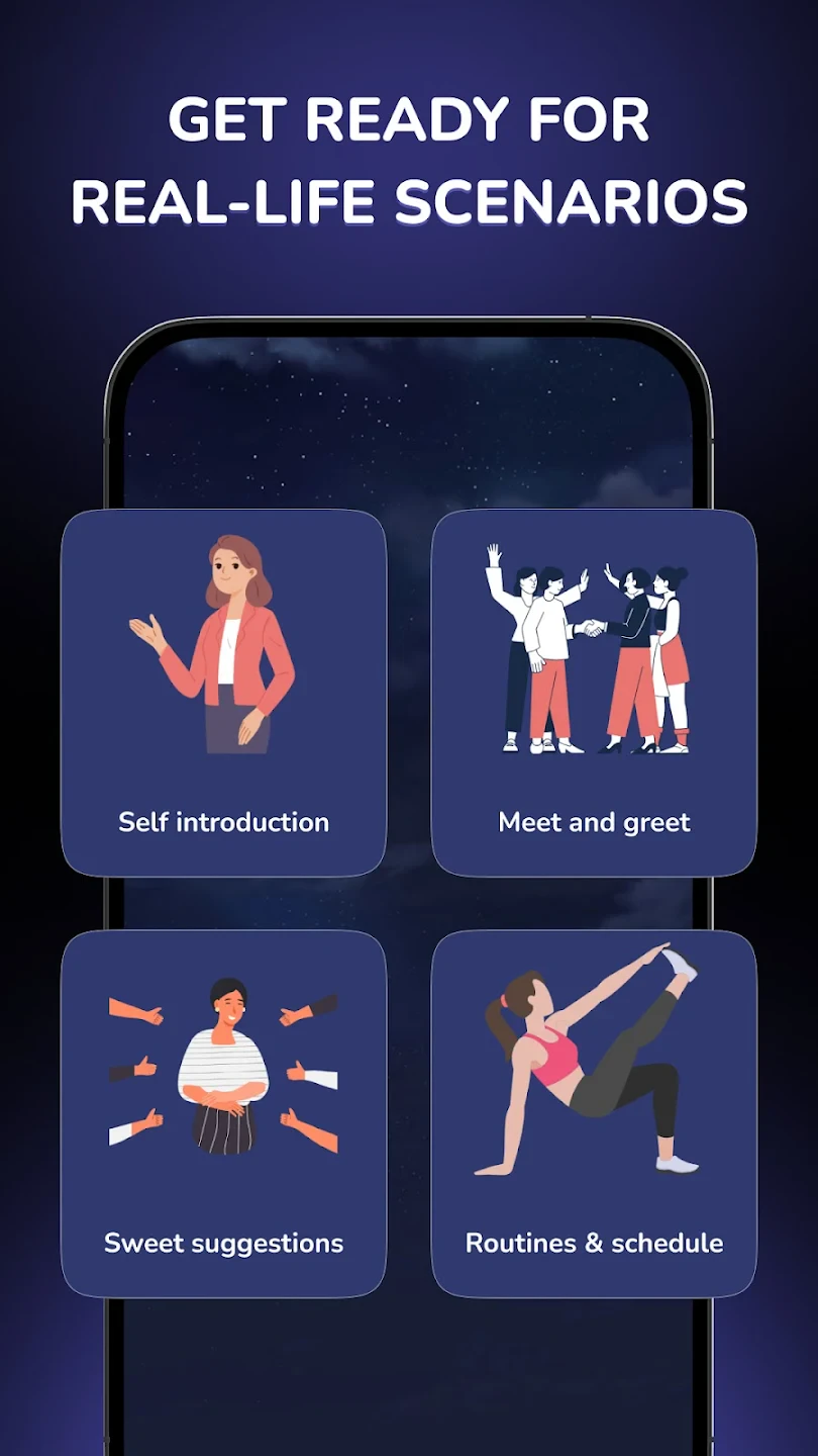 • Categorized Conversation Scenarios: Choose from pre-defined situations like ordering food, discussing hobbies, or job interviews, ensuring practice is relevant and goal-oriented, catering to diverse user needs, whether preparing for real-world travel or professional advancement. Its adaptability allows custom scenario creation too.