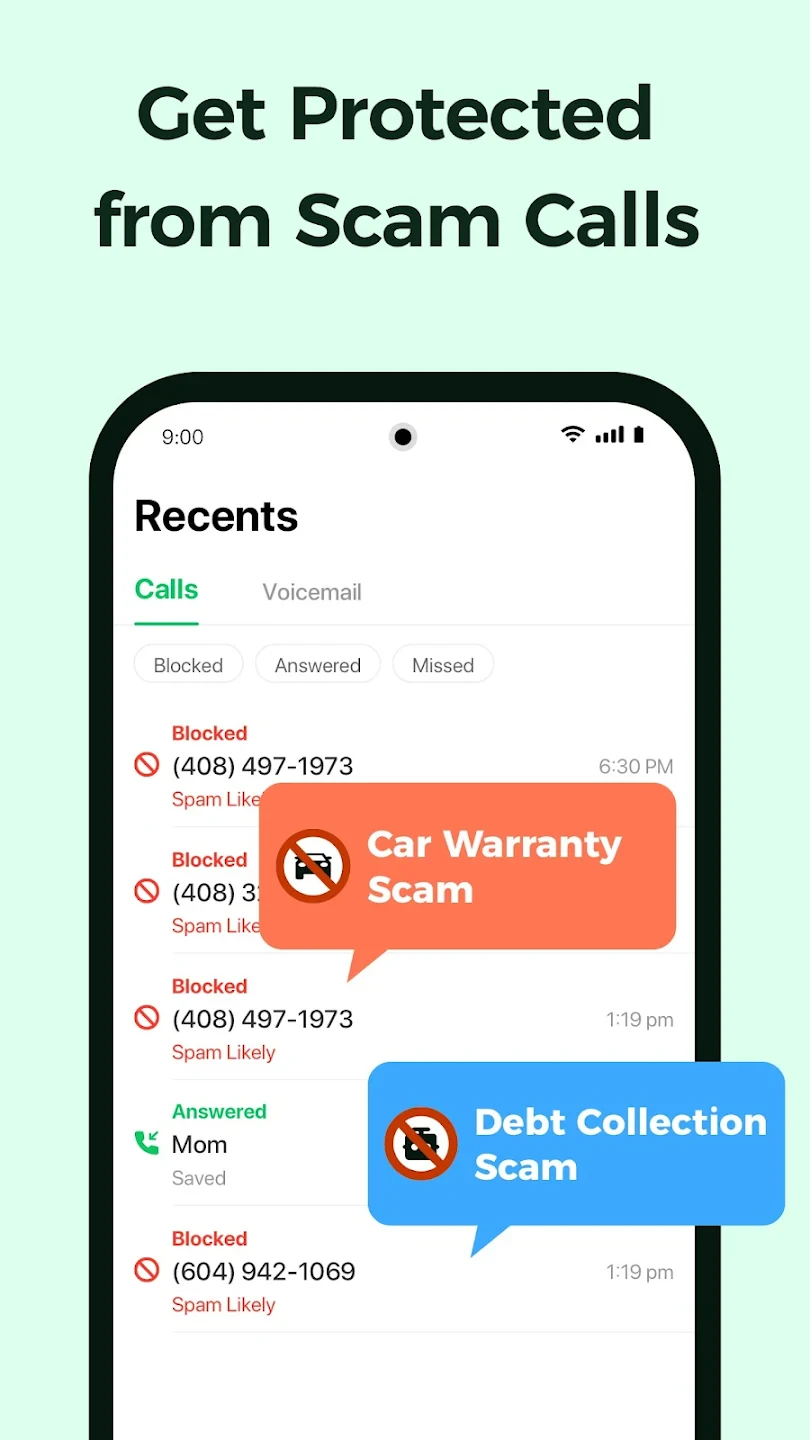 Provides real-time caller ID and automatic scam detection with the ability to report and verify questionable numbers.