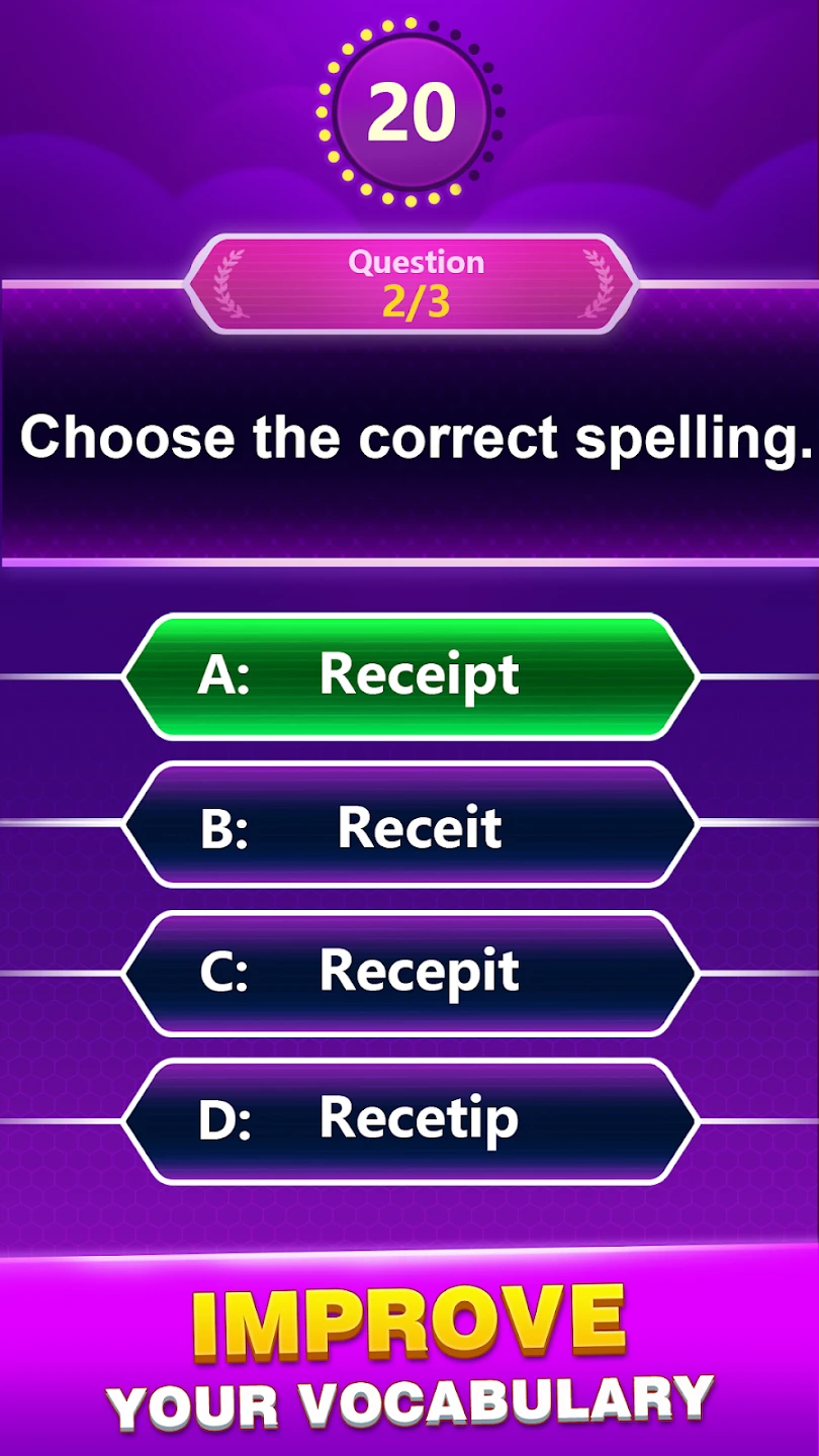A: “Spelling Quiz – Word Trivia” doesn’t have direct multiplayer, but you can compare scores and compete for the highest streak on our global leaderboard system.