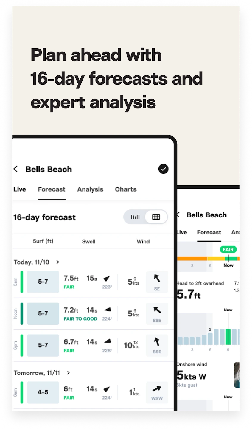 A: The free version offers basic forecasts and general conditions. Paid subscribers get unlimited expert reports, historical data, and access to less-crowded break information — plus no ad interruptions!
