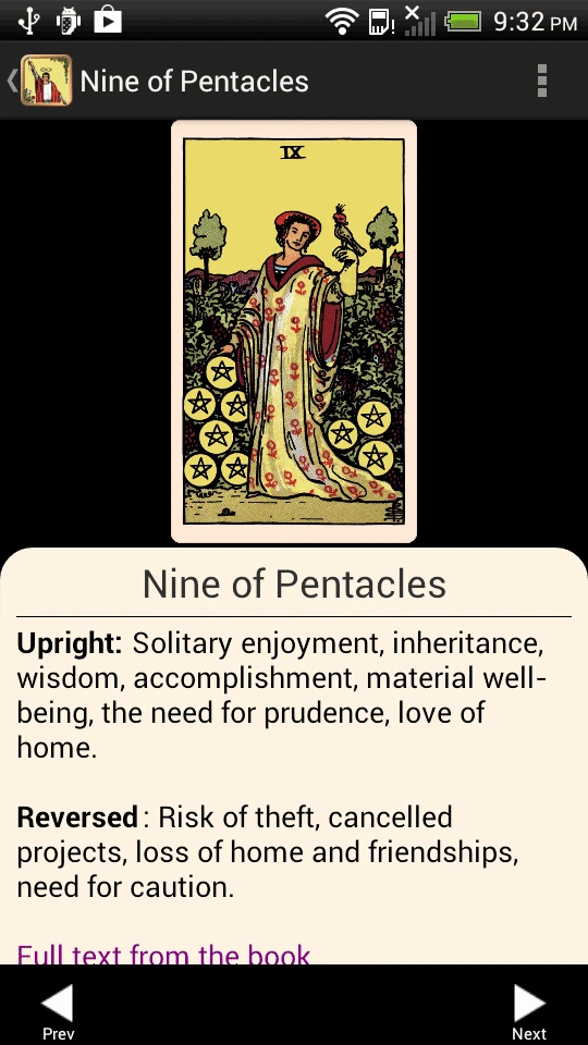 • Rich Card Details & Guidance: Tap on any card in a spread to instantly display high-resolution artwork, detailed meanings (upright/reverse), symbolism, keywords, and related cards. This immediate access helps users understand the messages conveyed by the cards during their digital reading, providing context and depth directly on their device.