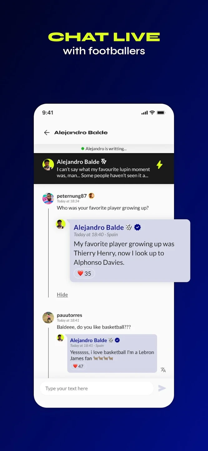 • Direct Messaging with Stars: Send messages directly to football players and other notable personalities featured on the platform. This feature allows dedicated fans to ask questions, share updates, or get personal greetings from their idols, making their fandom more interactive and memorable.