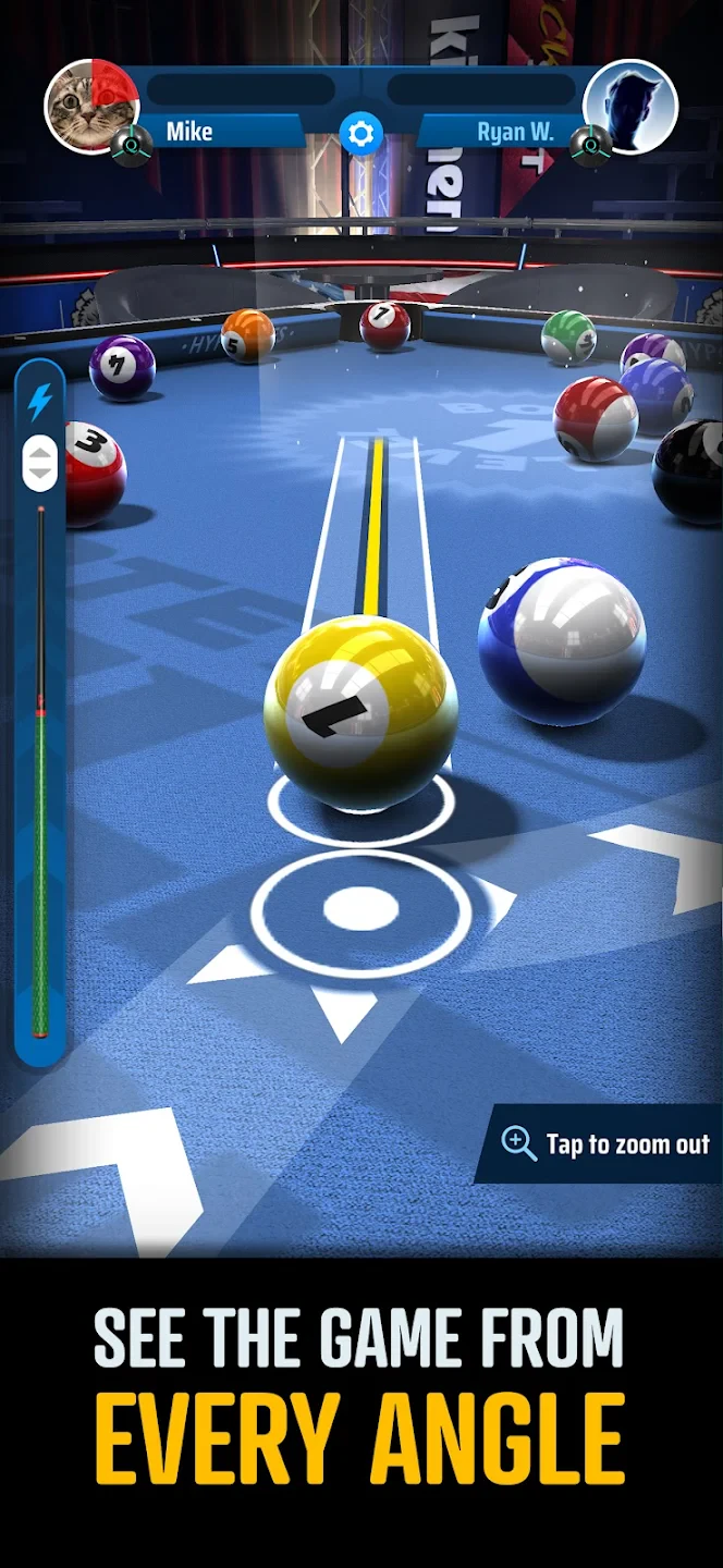 - [Visuals or Art Style]: The game boasts eye-catching, high-quality graphics often described as vibrant and detailed. Table environments, pool balls, and player/bot animations are rendered with a stylized, polished look. Effects like ball dynamics, cloth scratches, and dramatic reactions from AI opponents add to the polished and engaging visual aesthetic.
